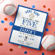 O Convite de Aniversário do Cute Rookie Baseball Budget Boy é um convite encantador e adorável desenhado com uma estética de aquarela. Com um esquema de cores azuis e uma ilustração fofa de um beisebol, ele captura o entusiasmo de uma celebração temática de beisebol. A tipografia é divertida, mas elegante, e o convite incorpora vários elementos temáticos relacionados ao beisebol. Perfeito para os pais que apreciam detalhes artísticos, este convite enfatiza o amor dos pais pelos esportes e marca o aniversário marcante dos seus filhos. Atinge um equilíbrio entre a cutendade e o desportivismo, criando um convite visualmente atraente e engajador para uma celebração memorável. Não perca esse design de beisebol para começar os planos de festa de aniversário do seu novato sem apertar o bolso.