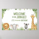 Create an instant wow factor at your party with this adorable Cute Safari Baby Animals Welcome Birthday Poster. Featuring charming watercolor illustrations of a baby lion, elephant, zebra, and giraffe nestled among green palm leaves, this poster is the perfect personalized decoration for a first birthday, baby shower, or any young child's jungle-themed celebration. The cheerful design and customizable text ("WELCOME TO THE JUNGLE! IT'S [NAME]'S BIRTHDAY") make it a wonderful focal point to greet your guests and set a fun, adventurous tone for the day.