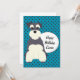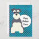 Cachorro Schnauzer bonito com fundo preto e azul de bolinhas e texto de aniversário personalizável central