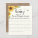 Carta de juego con el nombre del bebé, Hermosa Tematica de Flores de Girasol y abejas con la Frase " A LITTLE HONEY IS ON THE WAY". con linda tipografia en color negro y un fondo amarillo claro es ideal para recibir a esa trozo de miel que viene en camino!. Juego perfecto para jugar durante el baby shower. Se pide a los invitados que escriban los nombres de los bebés que comienzan con cada alfabeto. ¡Quien termine todos los alfabetos primero gana!
