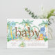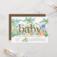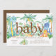 Adorável convite neutro para bebês dinossauros com dinossauros bonitos colocados num divertido fundo branco da selva tropical. Um convite bonito para um chá de fraldas neutro em termos de gênero. Visite nosso compro para ver este convite em outras cores.