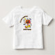 This adorable toddler t-shirt features a cheerful walking jack-o’-lantern with bright yellow shoes, white-gloved hands, and a friendly wave. Behind him, a glowing moon, fluffy clouds, and two playful bats complete the Halloween scene.