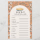 O cartão de jogos de palavras de bebê de chá de fraldas de uma menina fofa apresenta uma torta em forma de arco num fundo laranja com padrões florais. O verso apresenta um fundo laranja claro com padrões florais. Personalize-o para as suas necessidades. Você pode encontrar produtos correspondentes na minha loja. Respostas : 1. FRALDA 2. EMBALAGEM 3. ROLADOR 4. ANIMAL ALIMENTADO 5. ROUPA 6. TEDDY BEAR 7. RÁCIO 8. ENFERMEIRO 9. FRASCO 10. FÓRMULA 11 LEITE 12. CRADLE