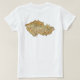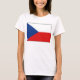 A frente desta t-shirt exibe corajosamente a bandeira checa com o seu triângulo azul à esquerda de bandas brancas e vermelhas. Isto é combinado atrás por um mapa atrativo da Tchechia.