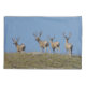 Mule Deer Bucks em Velvet Sky Lined Pillowcase. Quatro belos montes de veados em veludo cobriam galhadas em uma colina alta sob um belo céu azul nas planícies do sudeste de Alberta, Canadá.