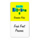 "Da Cozinha de" retro rótulo personalizado com script divertido e letras bonitas de cozinha contra blocos coloridos de azul, verde e lacre em letras amarelas e brancas e de script personalizado.