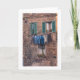 Cartão com a foto da lavanderia que pendura fora das janelas do apartamento em Italia. Vazio sobre para dentro.