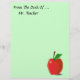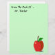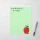 Personalize facilmente este artigo personalizado de papel timbrado da Mesa de... com qualquer nome. Ou, simplesmente, deixe de lado o texto. Uma maçã vermelha com ilustração verde no canto inferior. Muito espaço de cópia a ser gravado mais tarde. O fundo mostrado é um verde claro que pode ser facilmente alterado. Basta clicar em personalizar e clicar em "cores" para alterá-lo. Excelente de presente pessoal para professores, médicos, enfermeiros, loucos de saúde, etc.
