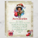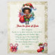 Uma bela carta de Papais noeis para um menino. O elfo é afro-americano. Papel bonito e vintage com flocos de neve e um pequeno elfo segurando brinquedos. Adicione o nome do seu filho na área de personalização.