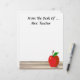 Personalize facilmente este artigo personalizado de papel timbrado da Mesa de... com qualquer nome. Ou, simplesmente, deixe de fora o texto, apagando-o. Uma maçã vermelha com ilustração verde em folha sobre uma mesa de madeira está no canto inferior. Muito espaço de cópia a ser gravado mais tarde. Excelente de presente pessoal para professores, médicos, enfermeiros, profissionais de saúde, etc. Lembre-se, "Uma maçã por dia, mantém o médico longe!"