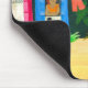 Um mousepad brilhante e alegre, decorado com uma colagem de papel pintado à mão de cabanas da praia.