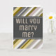 Este cartão caracteriza cores da terra, rústicas como cinzas, marrom e bege, junto com a mensagem importante, "você casar-me-á?". A mensagem no interior é personalizada.
