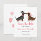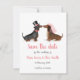 Convide seus amigos e família para guardar a data para seu dia especial com este cartão fofo com um garoto e uma garota dochshund em suas melhores roupas de casamento 💗 Adicione uma foto do casal feliz às costas para um lindo toque pessoal.