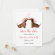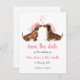 Convide seus amigos e família para guardar a data para seu dia especial com este cartão fofo com dois pratos de garota em suas melhores roupas de casamento 💗 Adicione uma foto do casal feliz às costas para um toque pessoal adorável.
