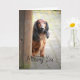 O cartão de saudação "Missing you" apresenta um belo dachshund vermelho e preto de cabelo longo, sentado ao lado do portão do jardim, esperando o retorno de alguém especial. Excelente para alguém que você conhece que precisa de uma face amigável e que você está pensando neles. Sentiment dentro diz: "e pensando no seu sorriso que me anima". O texto e as imagens podem ser personalizados para se adequarem ao destinatário.