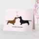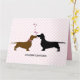 Amantes do Dachshund que wedding o grande cartão feito em um teste padrão cor-de-rosa e branco do quatrefoil, com as silhuetas de um beijo marrom e preto do dachshund. Personalize todo o texto para serir suas necessidades. Cartão doce para alguns amantes do doxie.