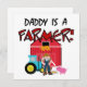 Este Pai de design giro é uma T-shirts, bibs, panos de arroto, cobertores, placas, travesseiros, keepsakes e outros itens possuem um celeiro vermelho, pai de fazendeiro, porco e trator azul