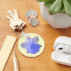 Este bonito chaveiro floral apresenta uma bela macro foto de um Daffodil mostrando esta planta em detalhes após um chá de chuva. A flor foi colorida artificialmente, resultando em pétalas externas brancas atordoantes com veias azuis e num trompete azul claro bonito. A foto é tão detalhada que você pode ver as pequenas gotículas de água sobre a flor. O fundo é amarelo pálido.