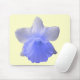Este maravilhoso bocal apresenta uma bela macro foto de um Daffodil mostrando esta planta em detalhes após um chá de chuva. A flor foi colorida artificialmente, resultando em pétalas externas brancas atordoantes com veias azuis e num trompete azul claro bonito. A foto é tão detalhada que você pode ver as pequenas gotículas de água sobre a flor. O fundo é amarelo pálido.