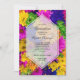 Foto elegante de belas margaridas em negrito, cores brilhantes e QUALQUER COR nas costas, esta design floral é perfeita para os convites de aniversário de Quinceañera da sua filha. Se você gosta de papel mais espesso, use o papel Matte ou para uma aparência brilhante, o papel Pearl Shimmer.