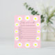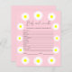 Esse charmoso e delicado convite apresenta uma bela margarida, delicadamente arranjada em design. A cor do convite foi escolhida - O Rosa do Milênio, a cor mais tendenciosa da próxima temporada. Itens correspondentes disponíveis. Respostas: CRAVINGS, CRYING, PACIFIER, FRASCO, LUZ NOTURNA, LULLABY, STROLLER, EPIDURAL, BURP, ALTA CADEIRA, SACO DE FRALDA, SWADDLE
