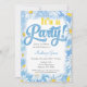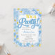 Um convite de aniversário bonito, azul e amarelo, com margaridas aquáticas. Faz um doce verão e primavera com todas aquelas margaridas felizes!