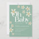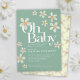 Um convite para flores bonitinho, daisy, com chá de fraldas, com flores de margarida pintadas à mão solta, creme e amarelo num fundo verde. Personalize com seus próprios detalhes de chá de fraldas. © Flores de margarida pintadas exclusivamente em guache e desenhadas por Sarah Trett exclusivamente para www.mylittleeden.com