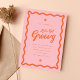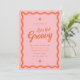 Estes convites de festas de aniversários apresentam uma cor laranja arrojada, combinada com uma rosa claro, criando uma estética vibrante e lúdica. A borda da onda retrorativa adiciona um toque de nostalgia e adiciona um elemento único e divertido ao design. Os convites vêm em várias opções de cores, dando a você a flexibilidade de criar uma aparência coesa para o seu dia especial.