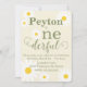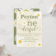 As margaridas brancas brilhantes adoram este belo convite para o primeiro aniversário do bebê.