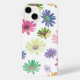 Este cobrir telefônico apresenta uma arte original que consiste em margaridas de cor brilhante. Este design de na moda ajudará seu telefone a se destacar para que não fique confuso com o telefone de outra pessoa. As margaridas coloridas em rosa, amarelo, verde e roxo são colocadas sobre um fundo branco.
