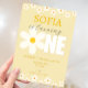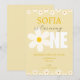 Bem-vindo à primeira comemoração de aniversário da sua criança com este divertido e cheio de margarida Convite de Primeiro Aniversário! Perfeito por avisar a todos sobre a próxima festa, é certamente um buquê de alegria para todos os convidados!