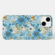 Bonito marfim e design abstrato de prado azul-margarida em um fundo azul macio.