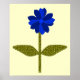 Este impressão bonito apresenta uma imagem digital de uma margarida com um caule verde com duas folhas verdes sobre ele e pétalas claras e azuis escuras com um centro azul claro. O fundo é amarelo-sol com uma bela borda azul. O design está disponível em vários tamanhos diferentes de impressão, sendo o maior mostrado aqui.