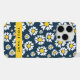 Padrão elegante, na moda e sofisticado com flores brancas margaridas sobre fundo azul marinho. Presente moderno e moderno, perfeito para o amante floral de design na sua vida. Personalize adicionando o seu nome, apelido, monograma ou iniciais.