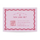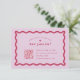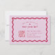 Estes cartões rsvp de casamento apresentam uma cor viva magenta arrojada combinada com um púrpura lilás leve, criando uma estética vibrante e lúdica. A borda da onda retrorativa adiciona um toque de nostalgia e adiciona um elemento único e divertido ao design. As placas vêm em várias opções de cores, oferecendo a flexibilidade de criar uma aparência coesa para o seu dia especial. A papelaria adicional nesta coleção foi projetada para misturar e combinar, permitindo que você crie uma busca personalizada e coordenada pelo seu casamento.