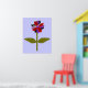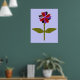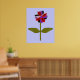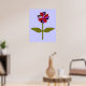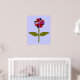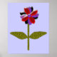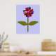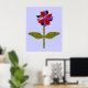 Este fantástico impressão floral apresenta uma imagem digital de uma margarida com um caule verde com duas folhas verdes sobre ele e pétalas roxas, vermelhas e pretas coloridas com um centro roxo. As pétalas parecem feitas de plástico brilhante que pegou a luz e causou um efeito iridescente. O fundo é uma cor azul calmante e há uma borda preta ao redor da impressão. Este design está disponível em vários impressões de tamanho diferente, o maior dos quais é mostrado aqui.