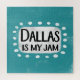 "Dallas Is My Jam" é um design de texto divertido com uma forma de sotaque branca cercado por pontos brancos texturizados.