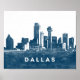 Um horizonte divertido de Dallas poster em lavagem de tinta azul e branca. Com um estilo legal e desolado, este impressão de linha do horizonte da cidade de Dallas faz um presente excelente para amantes do Texas e residentes texanos. Faz um excelente de lembrança e recordação.