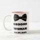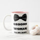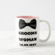 Adequada para a Noiva Homem ou Dama de Honra do Noivo, adicione o nome delas e a data do seu casamento a esta clássica Caneca de Casamento preta e branca da Dama de Honra do Noivo