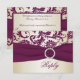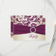 Este cartão de resposta em damasco elegante dourado claro e burgundy tem uma fita roxa-ameixa impressa e um broche de cristal que combina com o convite de casamento mostrado abaixo. Se você precisar de outros itens correspondentes ou gostaria de ter em outra combinação de cores, envie um e-mail para niteowlstudio@gmail.com com sua solicitação. Os itens correspondentes são mostrados abaixo.