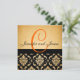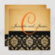 Convite elegante do casamento vintage com monograma e damasco preto. Mais projeta disponível em LuxuryWeddingInvites.com e em WhiteWhimsicalWeddings.blogspot.com. Personalize com seus nomes do monograma e cores do casamento. Adicione toda sua informação do casamento na parte de trás do cartão usando alertas fáceis de usar do menu de Zazzle.