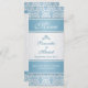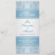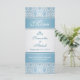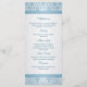 Cor damasco azul clara em um cartão Rack do Menu Casamento com gradiente prateado. Os itens correspondentes são mostrados abaixo: