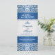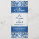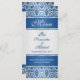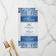 Cor damasco azul escura em um cartão de Rack do Menu de Casamento com gradiente prateado.