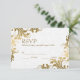 Damasco branco e placa RSVP de local Dourado