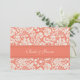 Cartões do convite do casamento no pêssego elegante alaranjado e fora da cor damasco floral clássica branca. Personalize estes convites com seus detalhes do casamento. Disponível em produtos de harmonização para todo seu casamento precisa.