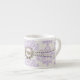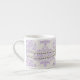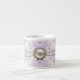 A caneca branca bonita do café, com gráficos elegantes de um suporte dobro da pérola e uma pérola grande gostam do bauble, no meio, de uma cor damasco da lavanda e do marfim. Caneca bonito que faz uma ideia bonita do presente.