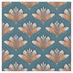 Damasco Laranja e Branco no Tecido Azul