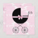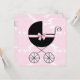 Adorável amortecedor cor-de-rosa com elegante carruagem preta de bebê embrulhada num doce arco rosa. Elegante e doce açucarada, chá de bebê. Adicione seus detalhes à frente e/ou atrás, simplesmente escolhendo o botão laranja "Personalizar!" para começar a adicionar detalhes do evento, estilo da fonte, tamanho e cor da fonte e texto. Observe que todos os designs de convite que você encontrará no Zazzle são gráficos impressos em estoque de papel plano sem joias reais, arcos, levantados, gravados em relevo ou peças ou peças adicionadas.