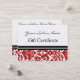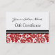 Certificado de presente customizável do salão de beleza, dos termas ou do cabeleireiro no vermelho elegante e bonito, cor damasco floral clássica preto e branco. Personalize com seu próprio texto para um certificado de presente personalizado para seu negócio. Contacte-nos para pedir uma cor feita sob encomenda ou uns produtos de harmonização para sua empresa.