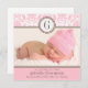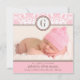 Um anúncio de nascimento bonito em uma cor damasco branca e rosa claro com a primeira do seu bebê em castanho. Graphics ©Mujka.